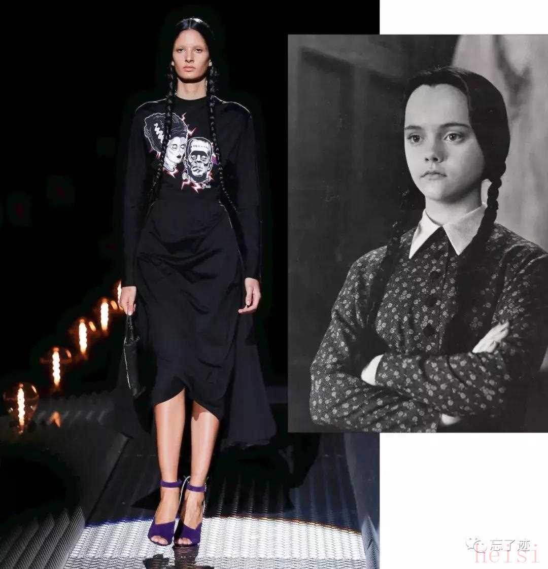 Prada用服飾的設(shè)計語言來描繪這世界現(xiàn)狀,夾在真實的渴求與不安定的現(xiàn)實中,尋找自己真正的美。用"弗蘭肯斯坦"與"星期三·亞當(dāng)斯"的角色編撰出一部哥特式浪漫主義風(fēng)的謠言。“弗蘭肯斯坦”這部科幻小說的角色是探明世界上的一種超自然的奧秘,也在表明科學(xué)技術(shù)的巨大進(jìn)步與成功令人歡欣鼓舞的同時,又讓人陷入恐慌和沉思。“星期三·亞當(dāng)斯”是《亞當(dāng)斯一家》里一個虛擬角色,她蒼白皮膚配長長的黑色雙辮,穿一條白領(lǐng)子的黑色連衣裙,一雙黑色長筒襪及黑色鞋子,人物大多數(shù)表現(xiàn)出痛苦的情緒。