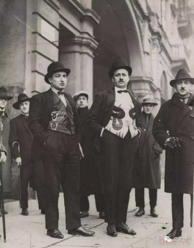時裝與工業(yè)生產(chǎn)開始完全地聯(lián)系在一起。在都靈相關(guān)的工業(yè)與手工展覽上,展示了意大利的畫作、裁縫、新面料等,這種自由的應(yīng)用藝術(shù)很快成為全球性的現(xiàn)象。時裝也是一門實用藝術(shù),并占有重要地位,反映了女性優(yōu)雅的姿勢,每天的早、午、晚禮服著裝的變化決定了女性的高雅態(tài)度。現(xiàn)代化的社會對空間和時間有了另一種認(rèn)知-未來主義,它是對未來信仰的態(tài)度,以及進(jìn)行過去幾十年培育的實證主義,這種前衛(wèi)藝術(shù)運動的起點基本上是對快速的推崇。實用與可用永遠(yuǎn)會驅(qū)逐過去多余的裝飾,而未來主義的宣言體現(xiàn)在藝術(shù)、文學(xué)、還有時尚。意大利藝術(shù)家兼設(shè)計師Ernesto Michahelles(化名Thayat)發(fā)明了連體衣Tuta,成為日常場合的實用性服裝。另外意大利未來主義畫家福爾圖納托.德佩羅(Fortunato Depero)設(shè)計的馬甲,通過令人目眩神迷色塊圖案引發(fā)出不對等的人生觀念,也摒棄了規(guī)范的著裝,這是前衛(wèi)風(fēng)格的表現(xiàn)。還有意大利畫家賈科莫.巴拉(Giacomo Balla)也是最著名的未來主義的主要支持者,他用不對稱的裁剪法、迷幻的色塊、傲慢的造型描繪了“未來主義風(fēng)的服裝”,他的作品因具有超越性和挑釁性而成為無可比擬。