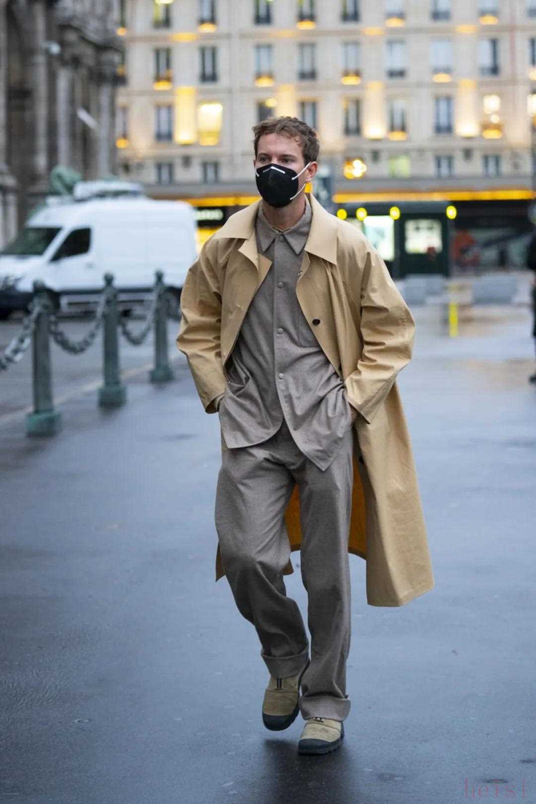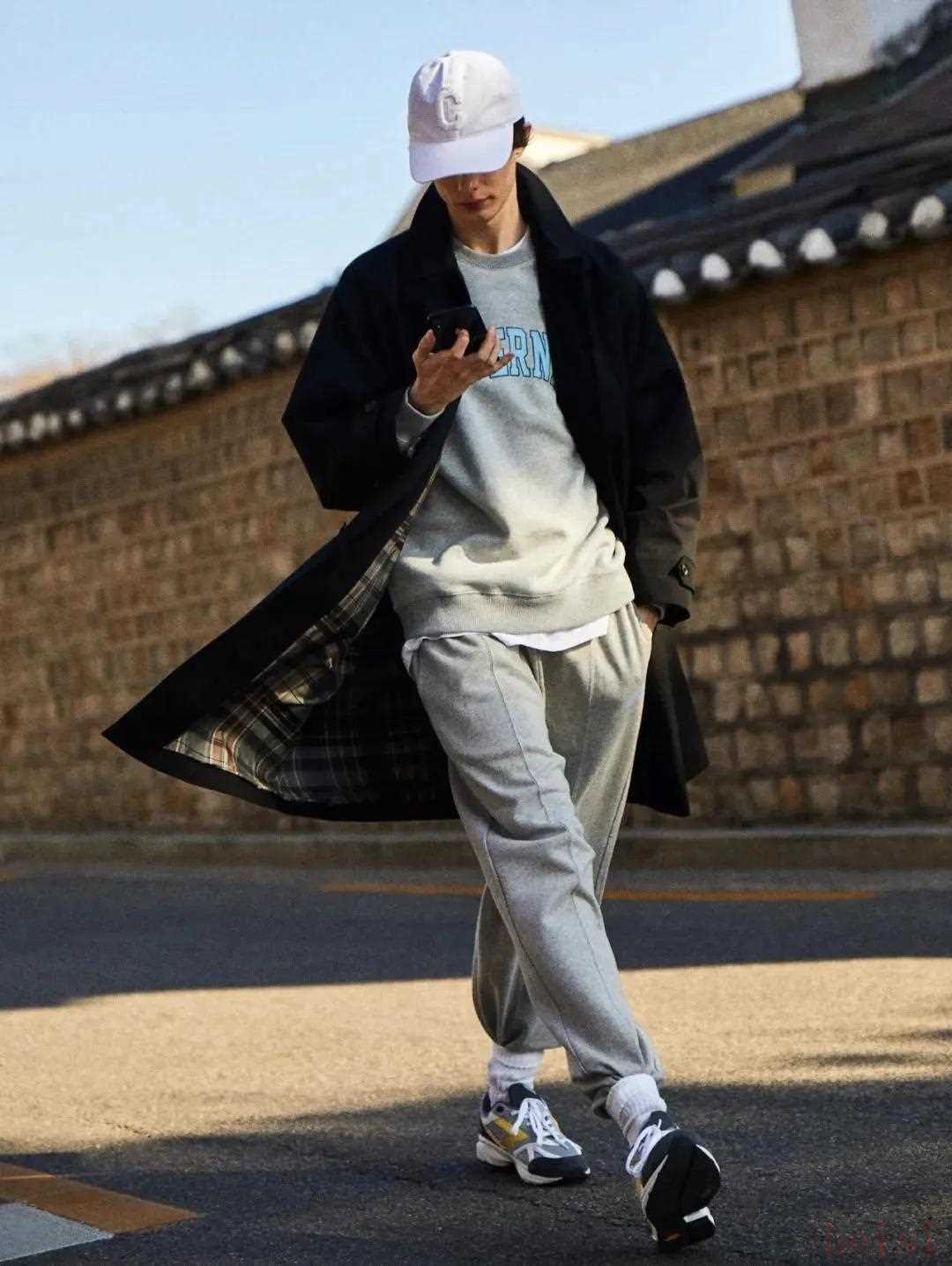 同套穿的時候,更多會在外面再套上一件夾克,或者是風(fēng)衣大衣這樣的長外套。目的就是為了讓運(yùn)動休閑的造型能夠體面起來,讓其更加“正式化”,別忘了 Athflow 也是有一定正式感需求的。