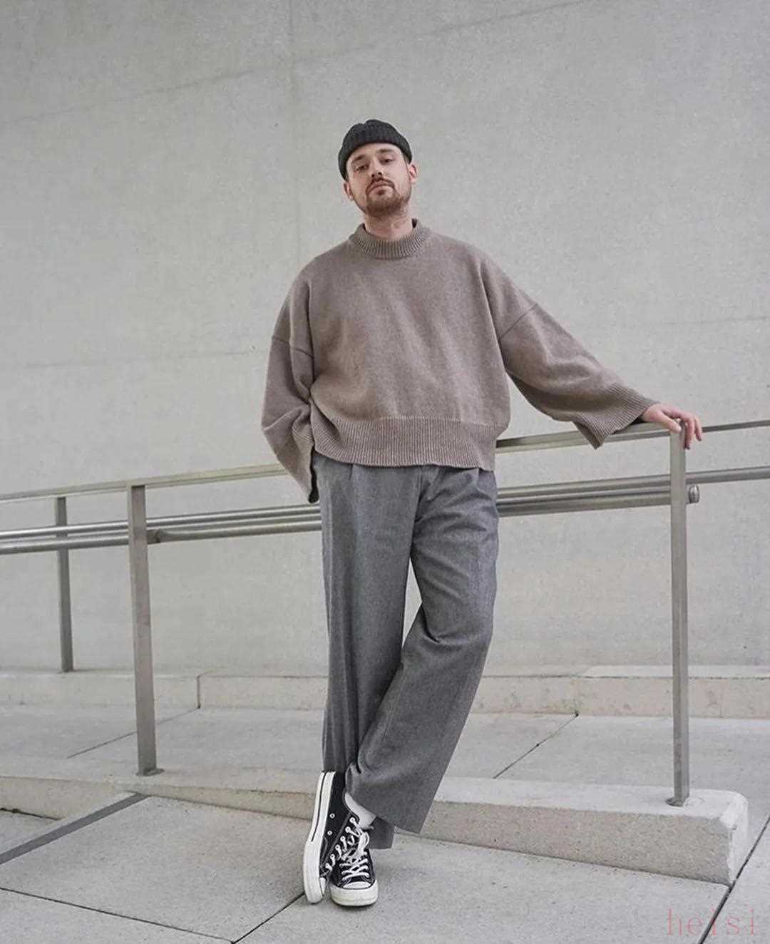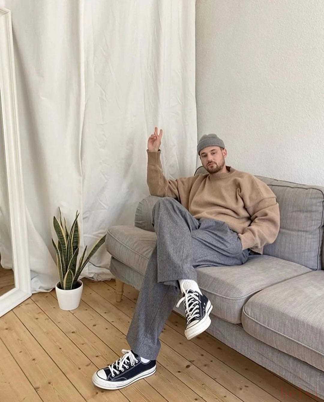 基本上也可以說,Athflow 就是在衛(wèi)衣衛(wèi)褲為基礎(chǔ)的造型上各種搭配變化,只是搭配的必須是“軟派”單品。針織質(zhì)地的毛衣也是 Athflow 風(fēng)格的代表單品之一,相比起衛(wèi)衣帽衫,它的質(zhì)感飽滿程度則要更高。