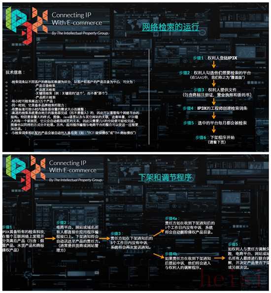 所謂的“大平臺”,其原理類似于阿里巴巴的知識產(chǎn)權(quán)保護(hù)系統(tǒng)Aliprotect,但覆蓋了所有的品牌商和電商平臺。他自己正在建立一個名叫IP3X的平臺,品牌商注冊后,IP3X為其定期檢索相關(guān)商品,發(fā)現(xiàn)假貨后發(fā)送下架指令,如果賣方未配合,IP3X有權(quán)采取強(qiáng)制行動。