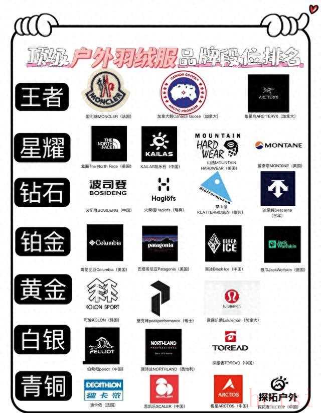 "頂級(jí)戶外羽絨服品牌段位排名 (戶外合集)"
