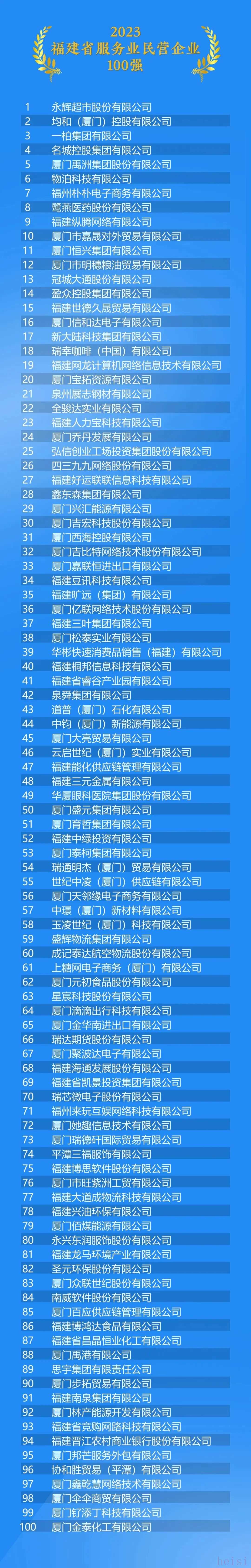 根據公開信息,2023年福建省民營企業(yè)100強榜單已經發(fā)布。這份榜單由"福建省工商聯"和"福建省工業(yè)和信息化廳"指導,"福建經濟報"聯合福建省企業(yè)評價中心共同發(fā)布。