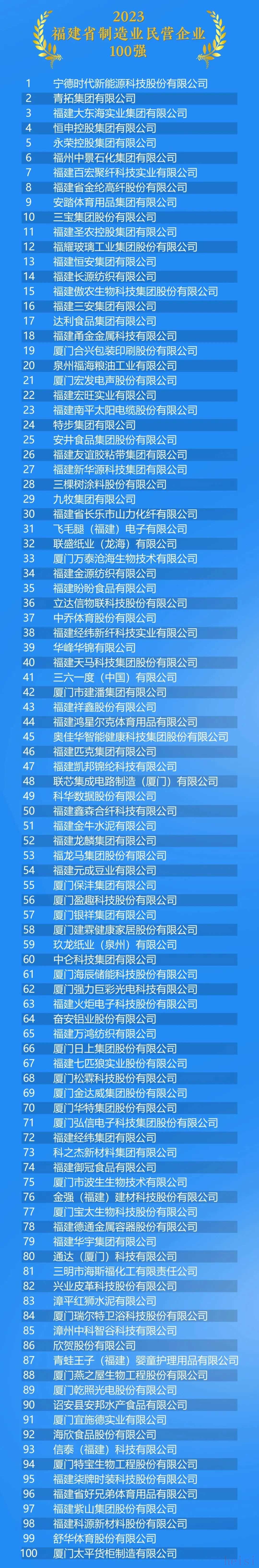 這是一個關于“2023福建省民營企業(yè)100強”榜單發(fā)布的信息。