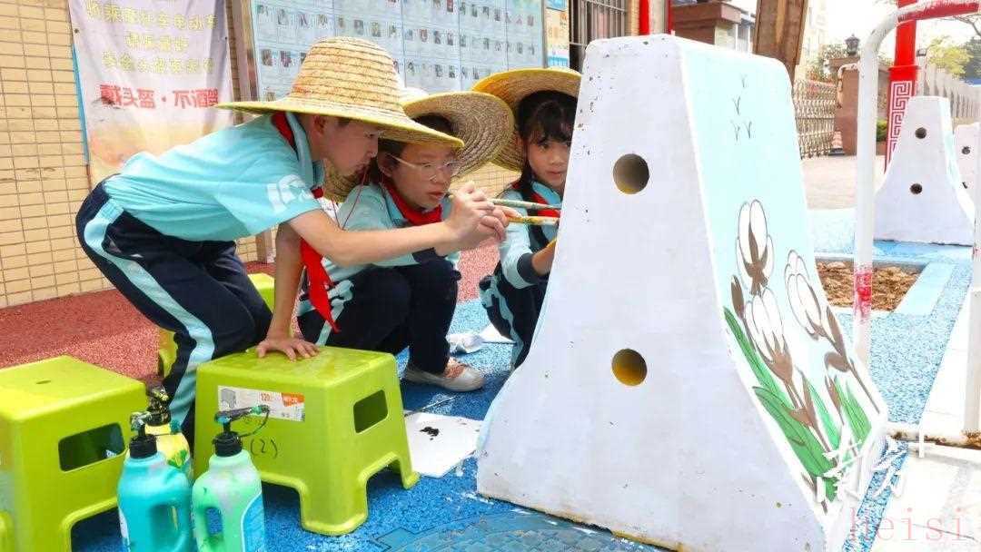 4月9日上午,高沙小學學生吳思穎跟同學們手持畫筆,圍聚在校園門前的石墩旁,全神貫注地開啟一場特別的創(chuàng)作之旅。