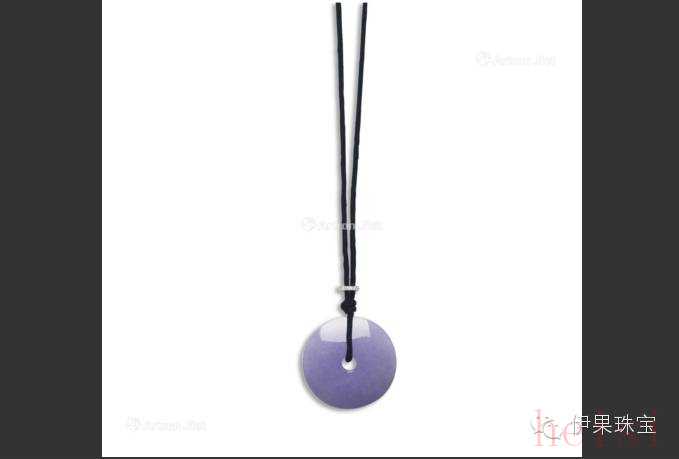 上圖是一件天然紫色翡翠平安扣吊墜,尺寸為29.88*4.55*6.83(mm),附黑色掛繩,當時估價為HKD200000~250000