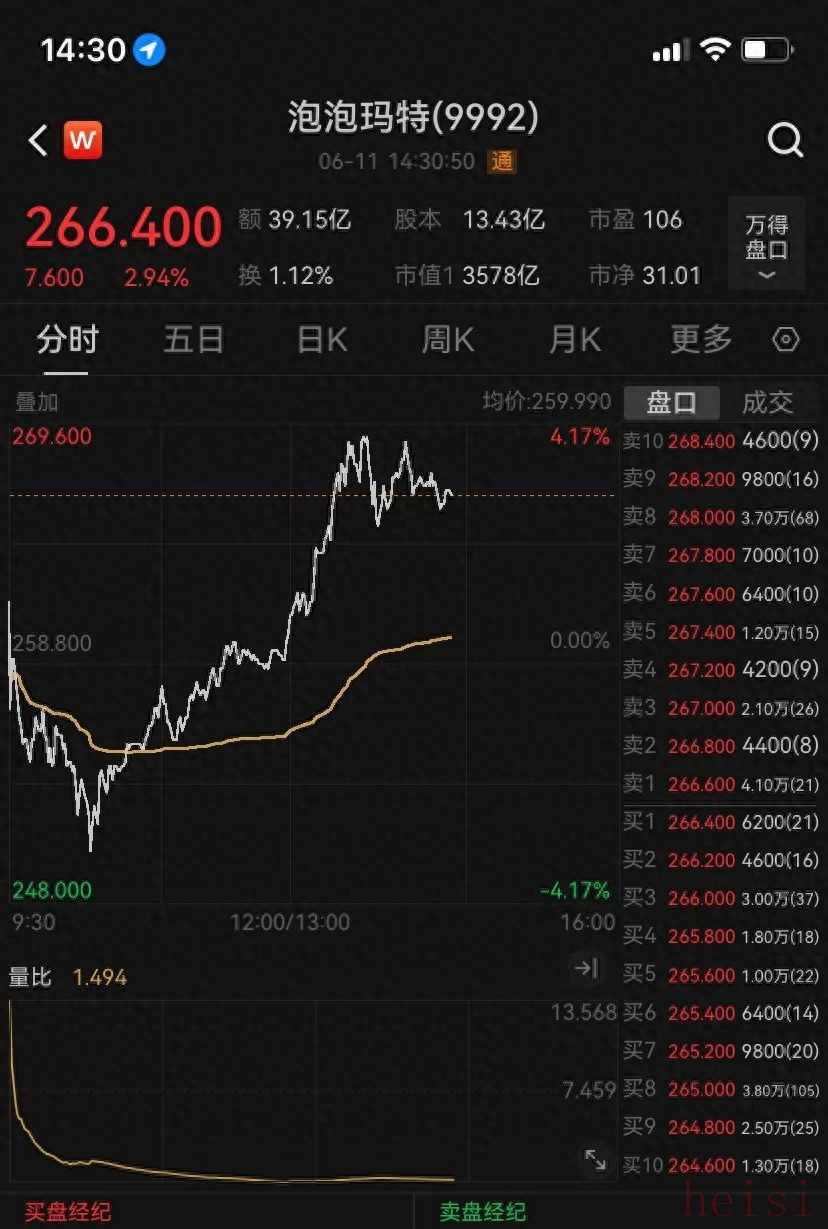 6月11日下午,泡泡瑪特一度漲超4%,股價(jià)續(xù)創(chuàng)歷史新高,截至發(fā)稿,漲幅收窄至2.94%,市值3578億港元。