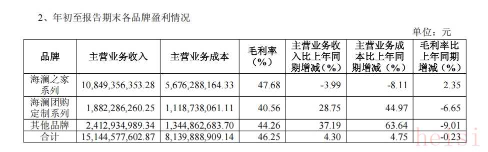 前三季度營收穩(wěn)步增長除了謀求品牌的年輕化轉(zhuǎn)型,海瀾之家加快數(shù)字化、智能化、綠色化轉(zhuǎn)型步伐,積極拓展多元化市場布局,還將“男人的衣柜”變成了“全家人的衣柜”。根據(jù)海瀾之家第三季度報(bào)告顯示,公司實(shí)現(xiàn)營業(yè)收入155.99億元,同比增長2.23%,歸母扣非凈利潤18.16億元,同比增長3.86%。公司業(yè)務(wù)包括自主品牌運(yùn)營、國際品牌授權(quán)及代理、 團(tuán)購定制以及京東奧萊等業(yè)務(wù)。公司旗下?lián)碛卸鄠€(gè)自主品牌,包括主品牌“海瀾之家(HLA)”、 女裝品牌“OVV”、潮流品牌“黑鯨(HLA JEANS)”、嬰童品牌“英氏(YeeHoO)”等;在國際品牌合作方面,成為奧地利運(yùn)動(dòng)品牌HEAD(海德)在中國區(qū)服飾業(yè)務(wù)的授權(quán)商,獨(dú)家授權(quán)代理阿迪達(dá)斯FCC系列產(chǎn)品在中國大陸的零售業(yè)務(wù)。此外,公司還開展職業(yè)裝定制業(yè)務(wù)“海瀾團(tuán)購定制”。2024年,公司與京東合作推出“京東奧萊”業(yè)務(wù),通過多品牌、全渠道持續(xù)擴(kuò)大市場份額,強(qiáng)化市場競爭力。主品牌“國民男裝海瀾之家”秉承承適人體、優(yōu)人態(tài)、合人需、達(dá)人意的產(chǎn)品哲學(xué),持續(xù)提升包容覆蓋度、迭代設(shè)計(jì)專業(yè)度、緊隨當(dāng)代需求變化、提升洞察共情力,創(chuàng)造有生命力的服飾。牌以“硬核科技+國潮美學(xué)”雙線并進(jìn),一方面,深耕功能性產(chǎn)品與精工品質(zhì),另一方面,將國潮文化注入品牌基因,覆蓋多場景消費(fèi)需求,持續(xù)保持競爭優(yōu)勢。三季度,海瀾之家系列在全國共計(jì)門店5684家,其中直營門店凈增115家至1583家,占比達(dá)27.85%。隨著公司門店布局的動(dòng)態(tài)調(diào)整優(yōu)化,購物中心等直營門店重點(diǎn)覆蓋核心商圈和重點(diǎn)增長區(qū)域,進(jìn)一步增強(qiáng)品牌市場競爭力,直營門店的毛利率提升1.26%至63.22%,從而實(shí)現(xiàn)了108.49億元的營業(yè)收入。
