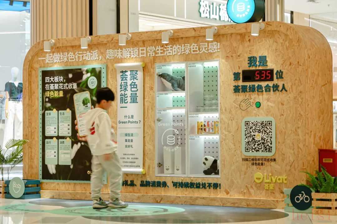 漫步上海薈聚,你總能發(fā)現(xiàn)不少可持續(xù)的小巧思。在商場(chǎng)2層,配合上海薈聚會(huì)員系統(tǒng)“薈聚綠色能量”板塊上線的全新布置“綠色能量站”,讓人眼前一亮??梢钥吹?,站點(diǎn)的透明柜中展陳了數(shù)個(gè)可持續(xù)商品,解讀多維度的可持續(xù)理念,市民還可按下互動(dòng)按鈕,爭(zhēng)當(dāng)“薈聚綠色合伙人”。