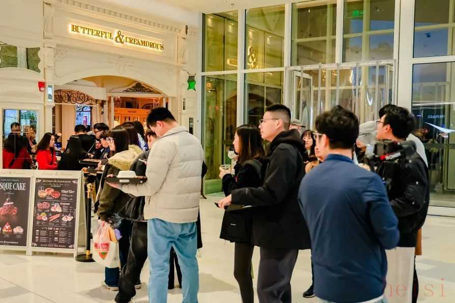 開業(yè)3個(gè)月仍舊生意火爆的“黃油與面包”,在商場(chǎng)開出全新法式洛可可藝術(shù)概念店,店內(nèi)供應(yīng)惠靈頓牛排牛角包、大大巧克力蝴蝶酥等經(jīng)典產(chǎn)品,以及草莓、奶油塔、拿破侖等系列甜品。