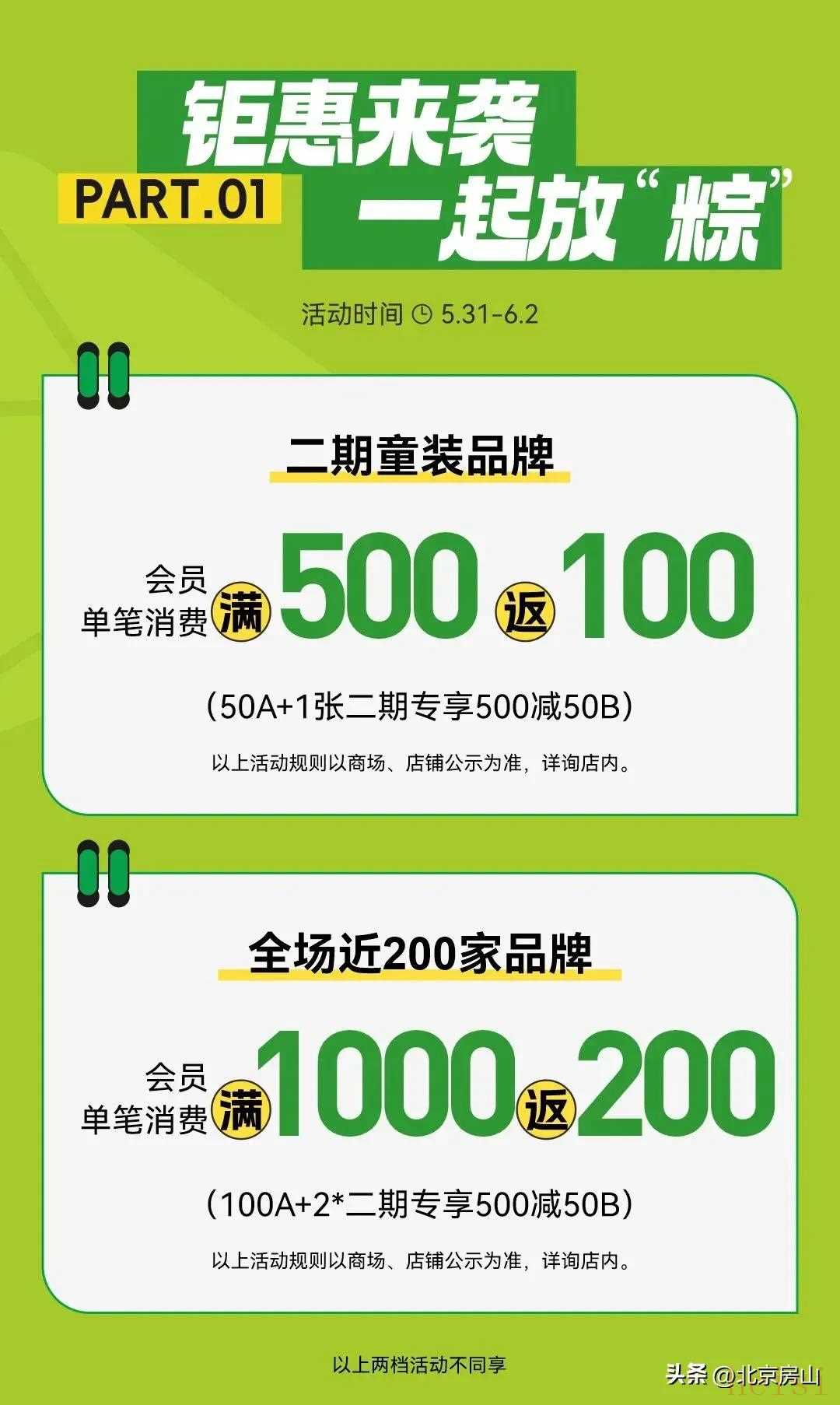 小伙伴們端午龍舟競渡,“六一”歡聲笑語雙節(jié)同慶,歡樂翻倍在這節(jié)日氛圍滿滿的時(shí)刻首創(chuàng)奧特萊斯特惠活動(dòng)盛大開啟為咱們房山區(qū)的小伙伴們送上超值福利開啟一場購物娛樂、親子互動(dòng)的歡樂盛宴鉅惠來襲一起放“粽”