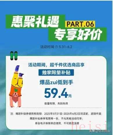 5. "體驗(yàn)?zāi)曛须p節(jié)狂歡 (Tǐ Yàn Nián Zhōng Shuāng Jié Kuánghuán):" 點(diǎn)明活動(dòng)的核心——年中(通常指夏季)和雙節(jié)(可能指端午和夏至,或泛指多個(gè)節(jié)日),并強(qiáng)調(diào)“狂歡”的氛圍,暗示優(yōu)惠、促銷、活動(dòng)豐富。