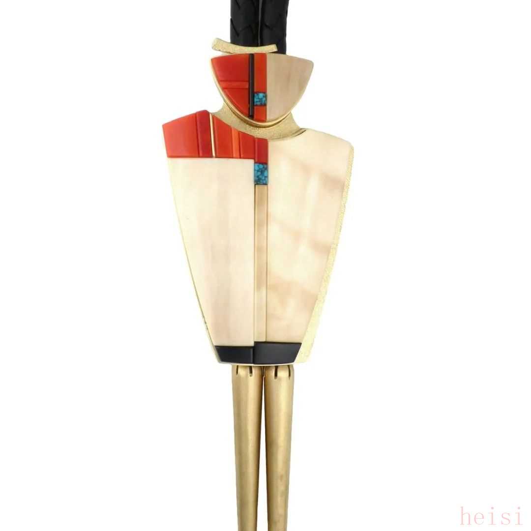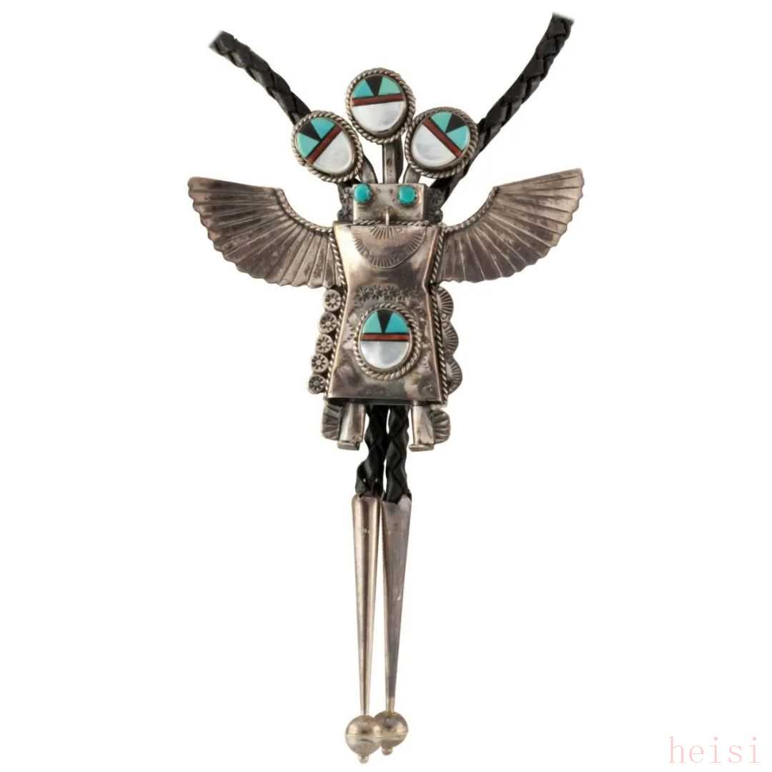 除去這些比較傳統(tǒng)的樣式,Bolo 領(lǐng)帶還可以與珠寶相搭配,更加體現(xiàn)出上限之高。來(lái)自新墨西哥州的 Richard Chavez 家族就是這方面的佼佼者,他一直致力于將本土石雕與源自近百年歷史的歐洲藝術(shù)運(yùn)動(dòng)的現(xiàn)代主義美學(xué)相融合,造型像盤(pán)旋的蜂鳥(niǎo)、靈動(dòng)的蝴蝶和神圣的人物。許多制作者都堅(jiān)持用常見(jiàn)的銀制和綠松石配方,而他則推動(dòng)了 Bolo 配飾的藝術(shù)可能性,也令他制作的 Bolo 領(lǐng)帶能進(jìn)入到拍賣(mài)領(lǐng)域成為收藏品選擇。