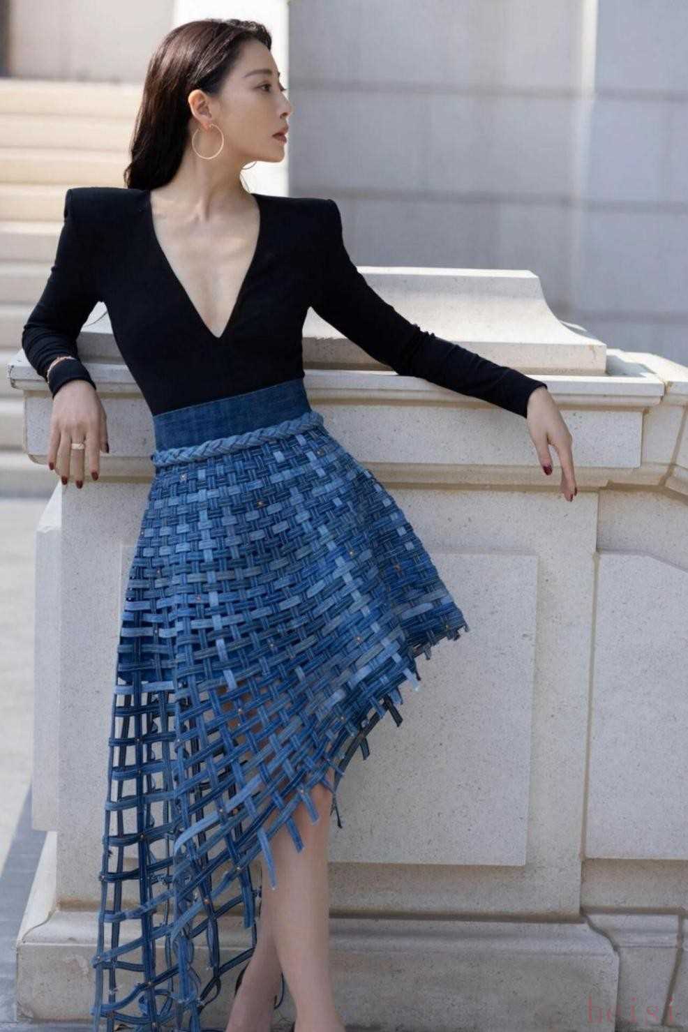 46歲殷桃身材太頂了,穿搭也很有檔次。